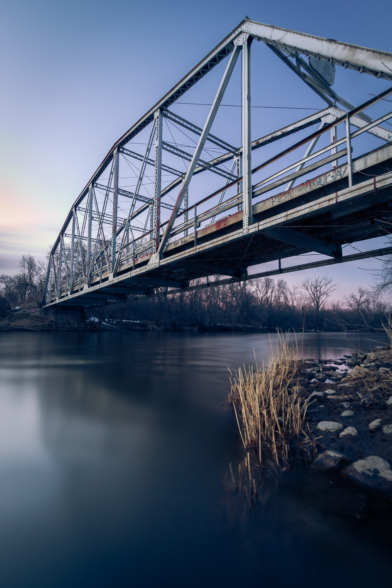 The bridge itself is the clear highlight of this location. Built in 1909, it’s a gorgeous remnant of times past. According to the Minnesota Department of Transportation, the bridge was built at a significant tipping point in bridge construction, making it stand out among existing bridges today. While the significance of many of the details is lost on non-civil engineer me, its visual appeal is indisputable. The slender beams forming the truss lend the bridge a delicate air, perfect for both wide shots and closer detail work. They form gorgeous patterns and leading lines, equally suited for foreground prominence and background interest. The silver paint allows it to take on the colors of the sky and surrounding landscape in a manner which feels almost alive. Combine its features, and it truly fits in with the landscape, rather than imposing upon it like its much larger concrete neighbor.