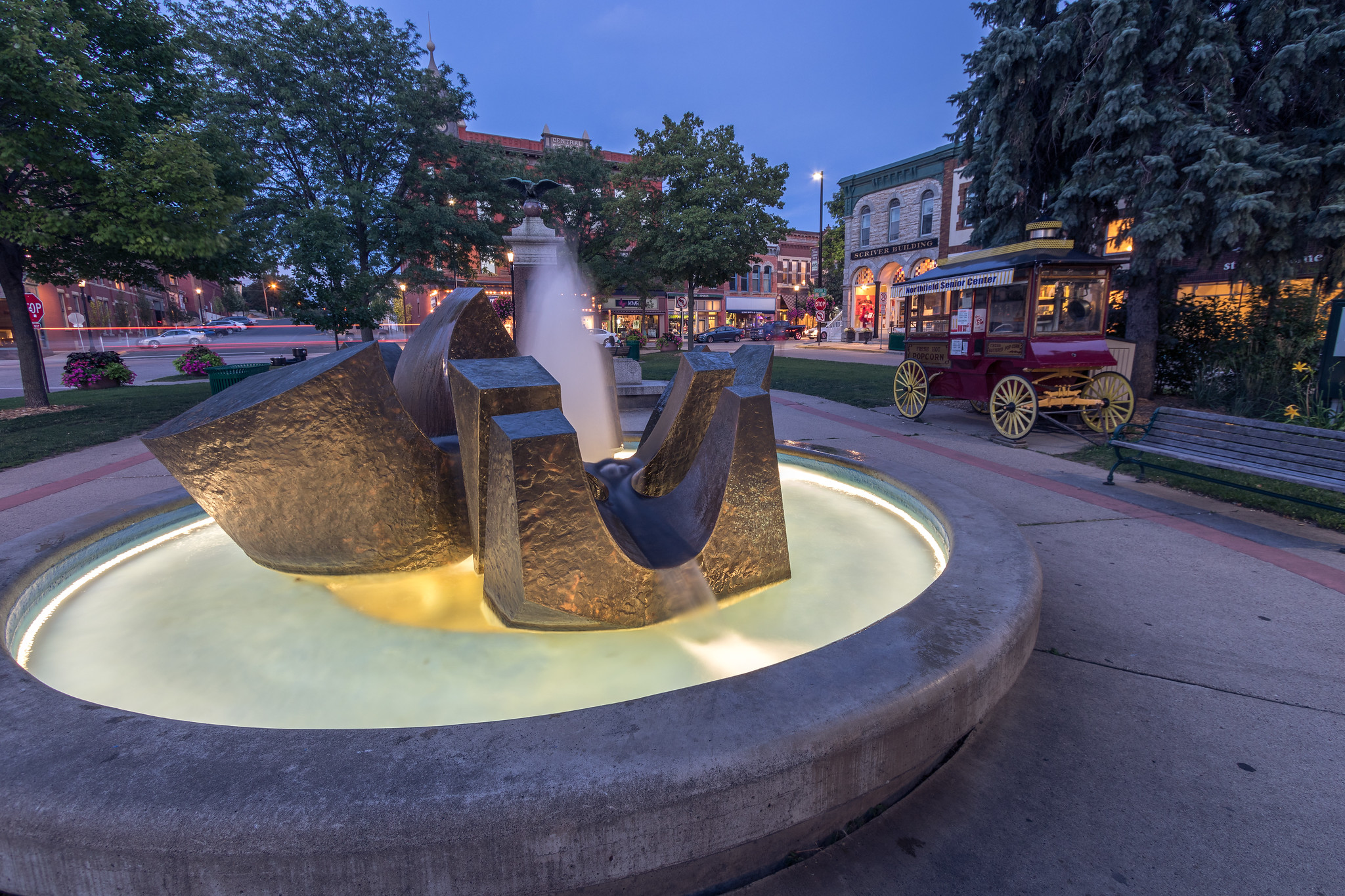 Bridge Square, with its fountain and popcorn wagon, indisputably forms the center of downtown.