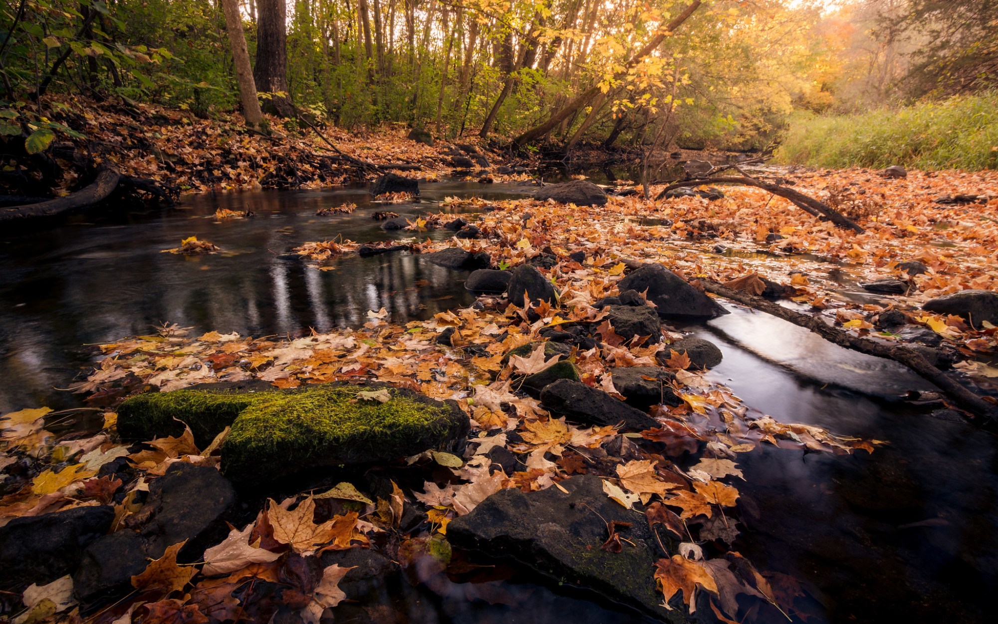 Heath Creek is one of my go-to locations when I’m in need of a nature fix. The creek itself serves as a centerpiece for the land. Rounded rocks make up the majority of the creek bed, making for interesting subjects for long exposures. The land around the creek is primarily mature maple/basswood forest, with a stand of old burr oaks and a recent forest restoration with saplings near Armstrong Road. In spring, the forest floor comes alive with a wide variety of ephemeral wildflowers.